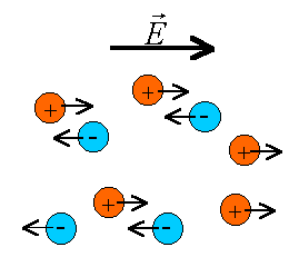 Po przyłożeniu pola elektrycznego na ładunki zaczyna działać siła elektryczna – na ładunki dodatnie sił o zwrocie zgodnym z kierunkiem pola, a na ładunki ujemne siła o zwrocie przeciwnym.