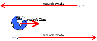 Doświadczenie Michelsona – MorleyaW słynnym doświadczeniu wykonanym przez fizyków amerykańskich – przez Michelsona i Morleya - próbowano sprawdzić prędkość rozchodzenia się światła w układzie związanym z Ziemią. Jak to wynika z klasycznego prawa dodawania prędkości, ponieważ nasza planeta okrąża Słońce z prędkością ok. 30 km/s, to powinien dać się zauważyć efekt zmiany prędkości światła względem Ziemi w sytuacjach gdy: