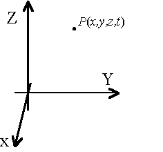 Przykładowo punkt materialny P znajdujący się w równych odległościach od wszystkich osi (równych 2 m) może mieć w chwili t = 5s położenie: